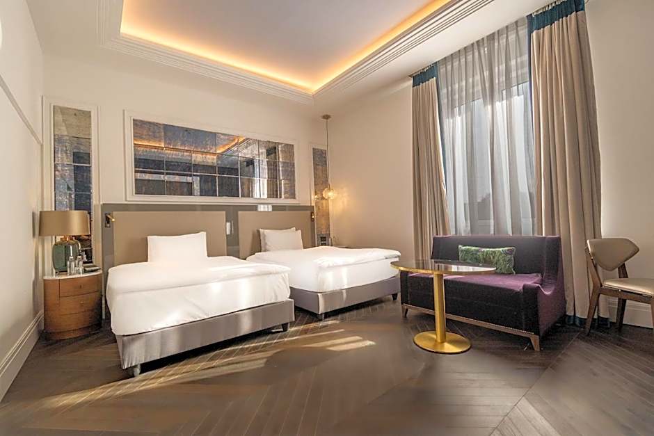 This double room features: - King size bed - Separate sitting area - Working area - Air-conditioning - 42' flat-screen TV system with multilingual satellite programs - Opening windows - Bathroom with mirror and telephone - Safe deposit box and Mini-bar - WiFi CD and DVD player - Ironing facilities